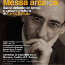 A distanza di 4 anni dalla sua scomparsa, Ricercare Ensemble tributa al compositore siciliano l’omaggio più aderente alla sua sensibilità. È per questo che sarà eseguita la Messa Arcaica, una produzione originale delle Meraviglie Cantate, che ridà vita al grande progetto di musica sacra eseguito in prima mondiale nella Basilica del Santo ad Assisi nel 1993 e al Teatro Greco Romano di Catania nel 2017, nell’ultima apparizione pubblica di Battiato.