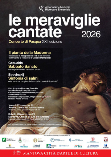 Il programma proposto commenta e celebra gli ultimi momenti della Sua passione, la morte in croce, con lo strazio della Madonna Sua madre sotto la croce del figlio morto, descritta nella Laude di Jacopone da Todi e nel “contrafactum” un “travestimento spirituale” del celebre Lamento di Arianna, di Claudio Monteverdi, forse il momento più iconico del nuovo stile del “recitar cantando” che diventa, nella “Selva morale e spirituale ”, il PIANTO DELLA MADONNA AI PIEDI DELLA CROCE (Iam moriar mi fili), che si adatta alla perfezione, alle pieghe espressive della musica del lamento originario.
